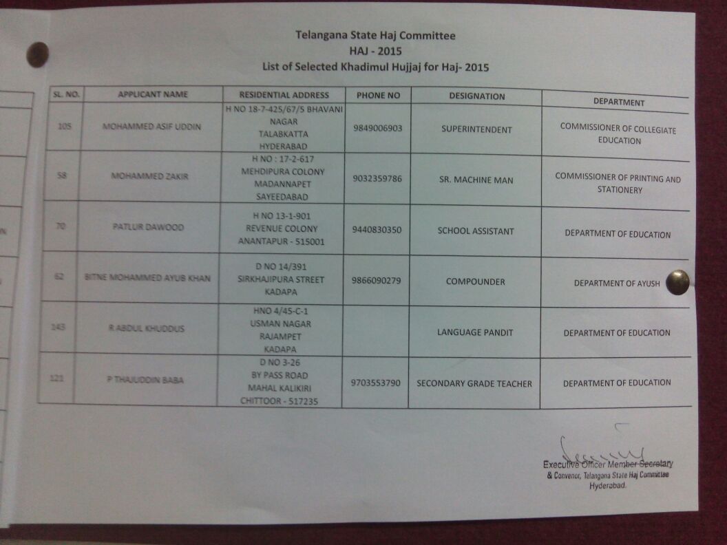 Selected Khadimul hujjaj for the year 2015