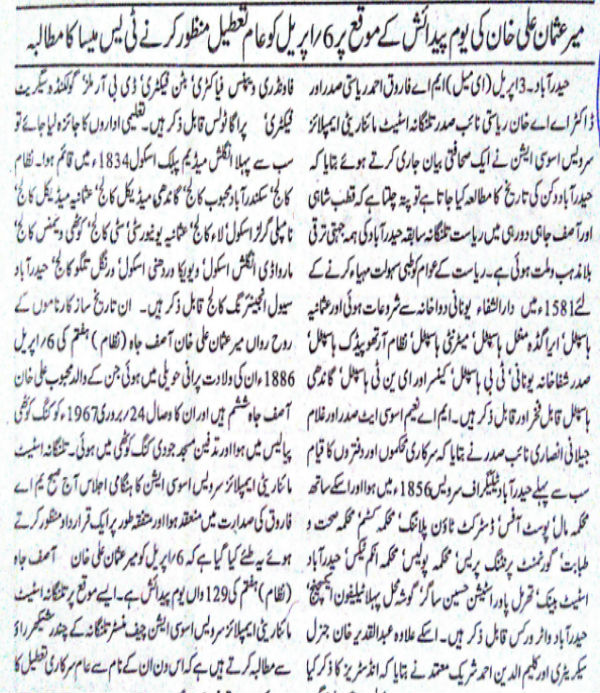 Holiday for Nizam's Birthday